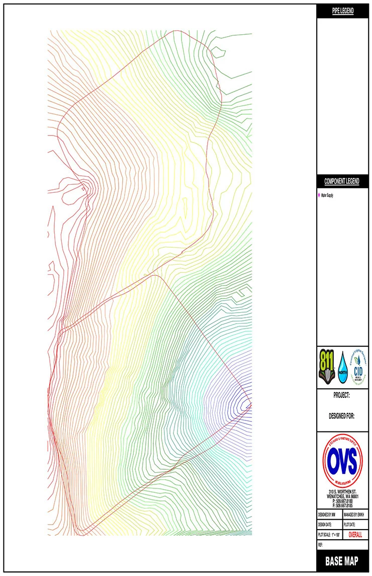 Raw information is brought in and processed into a highly-detailed elevation map. This level of detail adds to the accuracy of valve placement, mainline sizing, and calculating real world levels of energy needed to operate your irrigation. All of our design work is a partnership between the grower/operator and the designer.