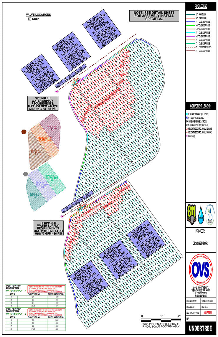 Get the most out of your irrigation with a custom design with specs to fit your unique property. Our designers use a variety of software platforms to create custom designs, crop mapping, installation planning and flow rates to properly and efficiently irrigate your crop.